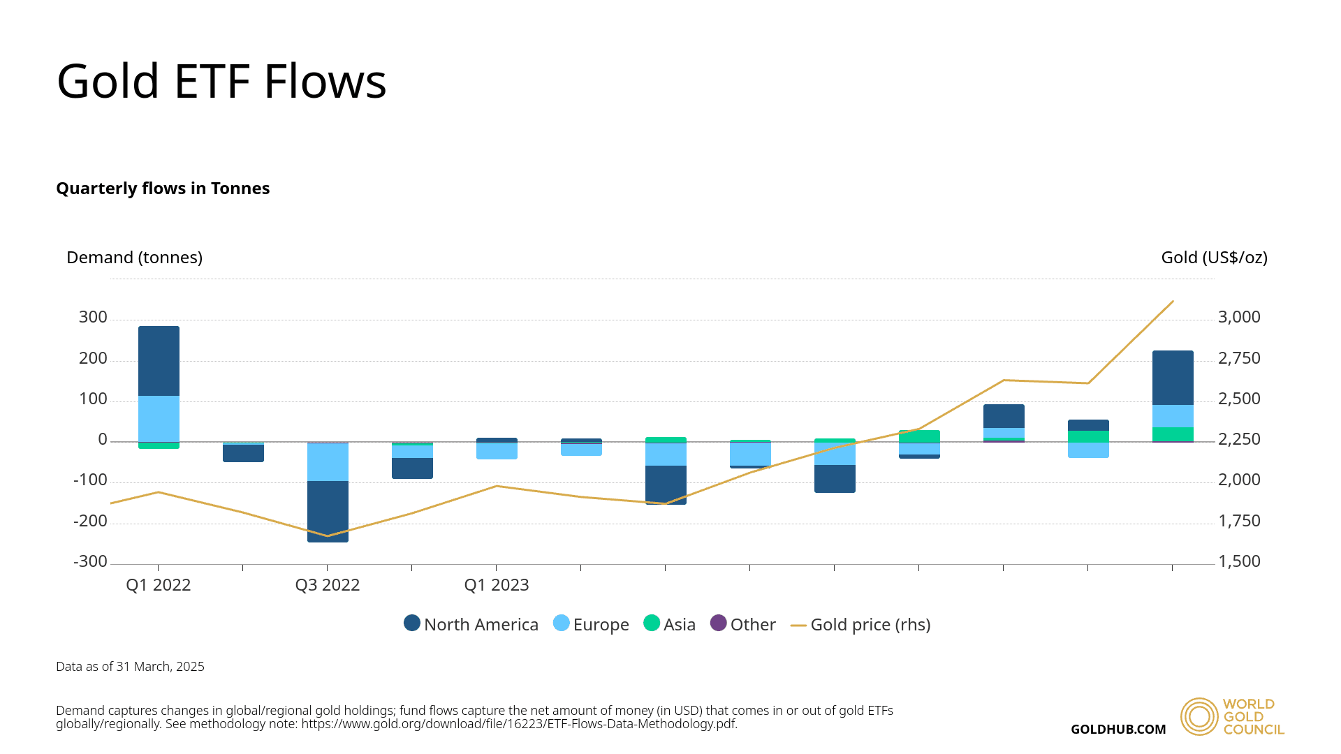 The move echoes a broader return to gold as a safe-haven asset. Inflows into gold ETFs hit 226.5 tonnes in the first quarter of 2025, the highest level since early 2022, according to veri from the World Gold Council. Nearly 60% of that demand came from North America.